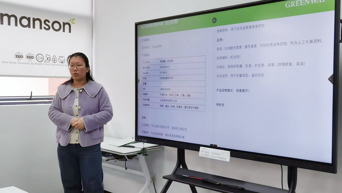 On March 23, 2026, in this vibrant spring season, Suzhou Greenway Biotech Co., Ltd. ushered in a feast of knowledge. To further enhance employees’ professional literacy and build a learning-oriented, professional expert team, the company organized a specialized training on cosmetics and health food raw materials. All 25 employees of the company gathered to explore the ocean of raw material knowledge, empowering their career development.